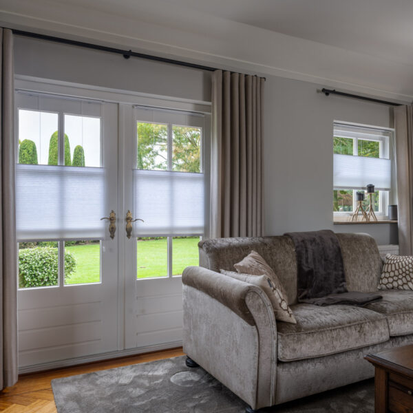 Dubbel plissés (honeycomb) zijn een van de beste isolerende raamdecoratie-opties. De luchtkamers werken als een buffer tegen warmte en kou, wat comfort en energiebesparing biedt.