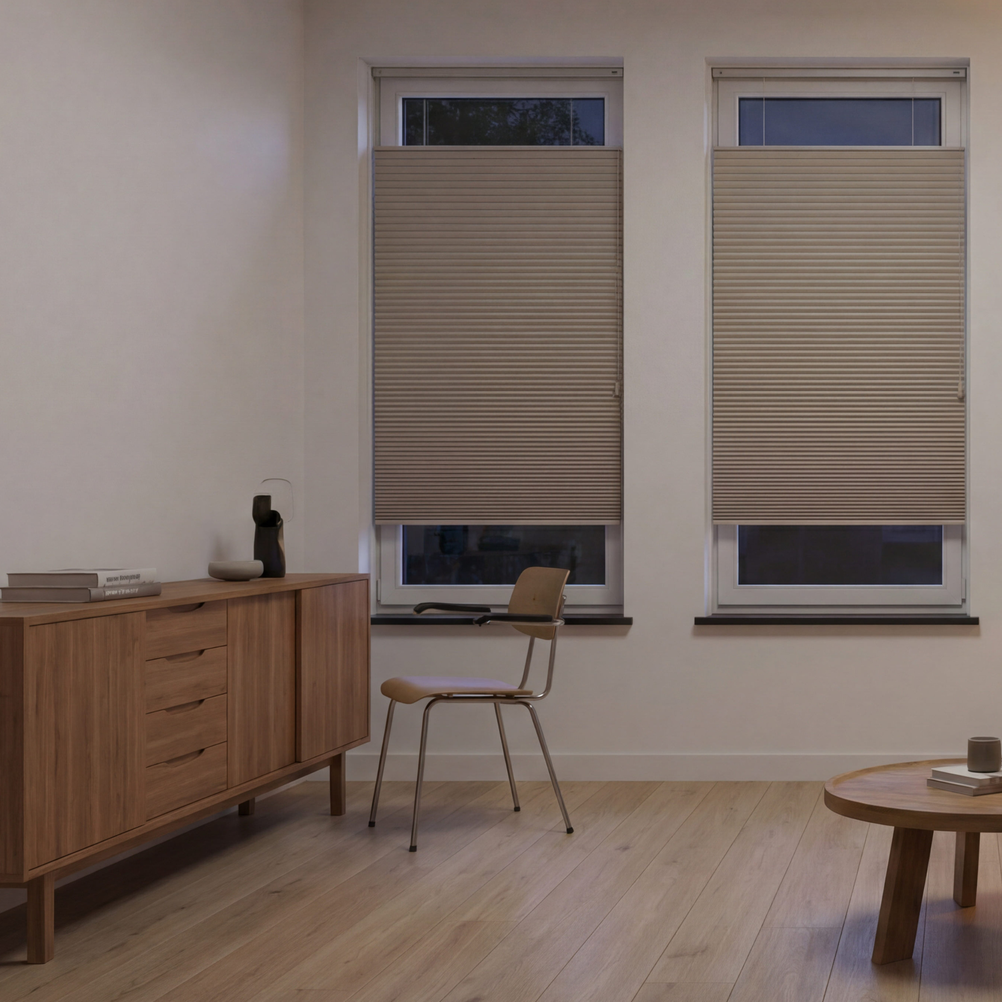 Wil je je interieur een upgrade geven én tegelijk energie besparen? Kies dan voor een plissé gordijn op maat dat past bij jouw stijl en raamtype. Verkrijgbaar in drie stijlvolle kleuren: wit, beige en grijs — altijd passend in een modern of tijdloos interieur.